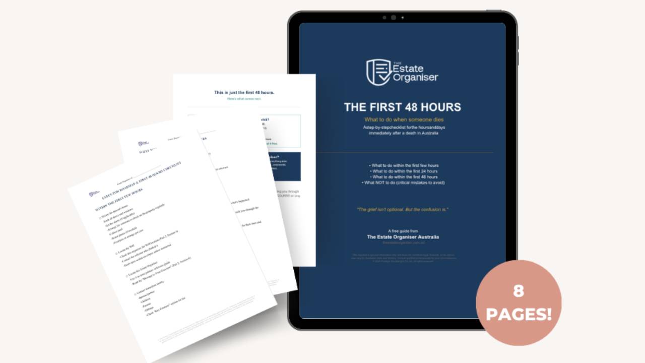 Just as important as what to do is what not to do. Bank accounts, bills, Centrelink, probate — most of it can and should wait. This tells you what can sit for a few days without consequences.